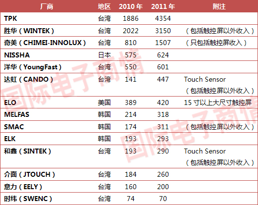 據(jù)水清木華研究中心最新報告,經(jīng)歷了2010年的爆發(fā)后,觸控屏行業(yè)開始呈現(xiàn)兩極分化。大廠家的收入飛速增加,而小廠家收入微幅增長甚至衰退。TPK和勝華兩大巨頭占據(jù)了行業(yè)的高端位置,以技術(shù)優(yōu)勢和客戶優(yōu)勢牢牢地占據(jù)了市場的大部分份額。雖然觸控屏整體市場在2011年繼續(xù)高速增長,但中小廠家卻很難從中獲益。2010年市場大好,使得不少企業(yè)都擴大了產(chǎn)能,這樣不僅是電阻觸控屏出現(xiàn)激烈的殺價競爭,電容觸控屏也出現(xiàn)殺價競爭。