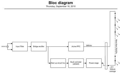 LED正越來越廣泛應(yīng)用于照明改造、工業(yè)照明、商業(yè)照明、街道照明以及其它眾多領(lǐng)域,其效率以及使用壽命已經(jīng)得以證實,為提供更高可靠性,它需要一個良好的電源以滿足其需求。我們的第一個方案是由兩級構(gòu)成:一個前端PFC與一個LM3445 LED驅(qū)動器。