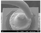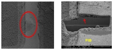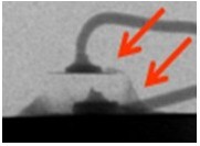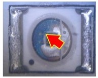 2. 變色:這類失效是指LED不點亮的狀況下,外觀顏色或膠材透明度與新品不同,用肉眼即可看出,通常在產(chǎn)品使用一段時間或在做完可靠度試驗后發(fā)生。一般說來,變色區(qū)域大致可區(qū)分為發(fā)生在導(dǎo)線架或封裝膠材兩類,若發(fā)生在導(dǎo)線架,通常是因為表面與環(huán)境中的化學(xué)物質(zhì)發(fā)生反應(yīng),如氧化或硫化,要分辨屬于哪種需仰賴成份分析,可使用的儀器包含有EDS(Energy Dispersive X-ray Spectroscope)、XPS(X-ray Photoelectron Spectrometer)、AES(Augur Electron Spectroscope)等等。若是封裝用的膠材發(fā)生變色,則屬于高分子材料的劣化現(xiàn)象,如環(huán)氧樹脂易受高溫或是紫外光影響而變黃,因此白光LED多改采矽膠取代之。分析此類失效應(yīng)特別留意,因膠材本身有一定的透明度,有時變色的導(dǎo)線架因被膠材蓋住而誤判為膠材變色,引導(dǎo)至錯誤的改善方向。