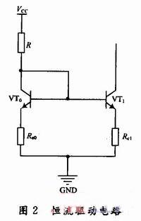 如圖2所示,這里由兩只特性相同的管子VT0和VT1構(gòu)成,兩管的發(fā)射極分別接入電阻Re0和Re1。電阻R中的電流為基準電流,其表達式為: