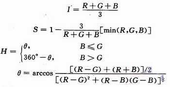 RGB模型面向電路,而HSI模型與人的顏色感知一一對應,所以需要通過RGB模型完成到HSI模型的轉(zhuǎn)換: