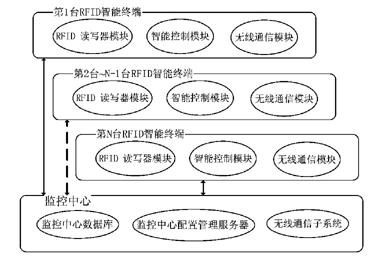 智能終端有備用電池,以確保交流供電中斷后系統(tǒng)仍能正常運行。RFID 智能終端的數(shù)據(jù)保存在FLASH 中,保證數(shù)據(jù)不丟失以及保障系統(tǒng)同監(jiān)控中心全天候通訊。監(jiān)控中心配備UPS 不間斷電源,保證主機(jī)正常運行和與智能終端之間的通訊。
