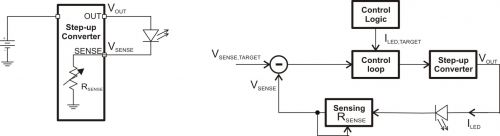 圖2使用外部電流檢測電阻的簡單LED 驅(qū)動方法