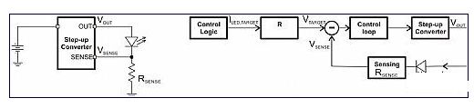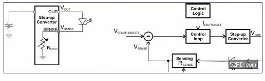 將閃光燈 LED 與一個電流檢測電阻串聯(lián),然后通過一個升壓轉(zhuǎn)換器來驅(qū)動,這是一種簡單的方法。圖 1 描述了這種方法。