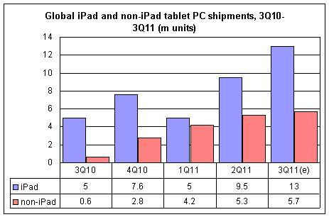 - 蘋果iPad第三季度出貨量僅為1300萬部