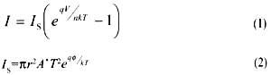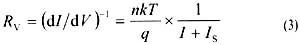視頻電阻是伏安特性曲線(xiàn)在原點(diǎn)及其附近的斜率,它反映了勢(shì)壘高度的相對(duì)變化,決定著在零偏置或一定偏置條件下低電平射頻到直流的功率轉(zhuǎn)換效率。它可由肖特基勢(shì)壘二極管的伏安特性來(lái)表示[1]