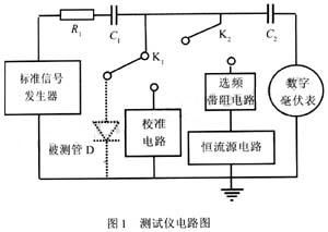 測(cè)試儀電路圖見(jiàn)圖1,它由以下幾部分組成: