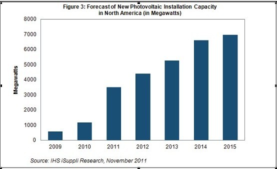 據(jù)IHS iSuppli公司的北美光伏市場(chǎng)報(bào)告,美國(guó)加州的許多太陽(yáng)能項(xiàng)目經(jīng)過(guò)多年開(kāi)發(fā)之后終于投產(chǎn),預(yù)計(jì)2011年北美的光伏(PV)太陽(yáng)能系統(tǒng)安裝容量將大增200%。
