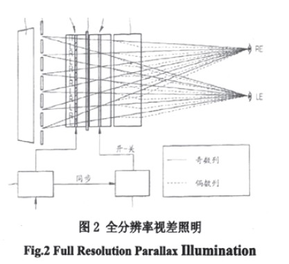 該方法能應(yīng)用于視差屏障、視籌照明、柱狀透鏡等傳統(tǒng)技術(shù)的改進(jìn)上.但是結(jié)構(gòu)相對較復(fù)雜且大大增加了顯示器的厚度。