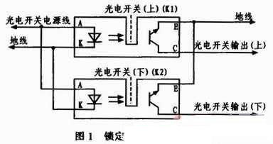 加鎖狀態(tài)下,計算機檢測光電開關輸出(上)信號,若為低電平,則輸出加鎖控制信號到電機,控制凸輪向上運動,擋片(圖1中虛線所示)隨凸輪運動逐漸擋住光電開關(上)發(fā)光部分,K1停止工作,光電開關輸出(上)變?yōu)楦唠娖?,即加鎖到位信號,控制計算機接收高電平并撤銷對電機的控制信號;解鎖狀態(tài)下,計算機檢測光電開關輸出(下)信號,若為低電平,則輸出解鎖控制信號到電機,控制凸輪向下運動,擋片隨凸輪運動逐漸擋住光電開關(下)發(fā)光部分,K2停止工作,光電開關輸出(下)變?yōu)楦唠娖?,即解鎖到位信號,控制計算機接收高電平并撤銷對電機的控制信號。