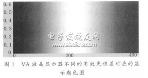 試驗選用VA 液晶顯示器共8 小單元,分別調(diào)配合適液晶,使光程差從小到大分別為320nm、460nm、544nm、572nm、600nm、612nm、624nm 和648nm。