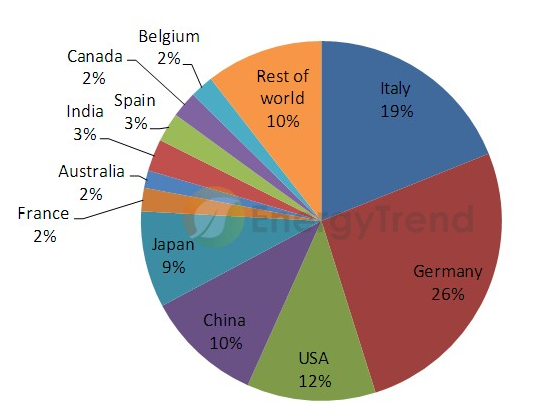 根據(jù)EnergyTrend的預(yù)估,2011年全球太陽能市場安裝量將來到19GW,但產(chǎn)業(yè)整體的庫存量(包括成品與半成品)將高達10GW左右,因此就產(chǎn)業(yè)鏈的供需狀況來看仍是處于嚴重供過于求。展望2012年,EnergyTrend預(yù)估全球市場需求量約維持在19GW左右,需求無法成長的主因在于歐洲市場的需求受到政策調(diào)整的影響,意大利、德國、英國等國的需求呈現(xiàn)下滑的態(tài)勢;另一方面,亞洲市場的需求受到政策的鼓勵而出現(xiàn)成長的狀況,但像中國、日本、馬來西亞、與泰國等,2012年的需求仍處于小幅成長的狀況,EnergyTrend預(yù)估至2013年市場才會出現(xiàn)強勁的成長。除此之外,北美與印度市場雖然受到矚目,但這二大市場仍有問題需求解決。在北美市場來看,美國市場受到Cash Grant法案將于2011年底到期的影響,2012年將以Tax Credit法案接手,然EnergyTrend認為Tax Credit對于推升市場發(fā)展的力道有限,使得2012年美國市場處于混沌不明的狀況。而在印度市場方面,雖然National Solar Mission的推行讓印度市場具有龐大的潛在需求,但中央與地方政府的執(zhí)行效率與財務(wù)狀況,再加上在地自制率(Local Content Requirement)的推行,將是影響印度市場未來發(fā)展的不確定因素。