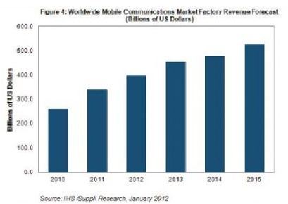 - 2012年移動通信市場的工廠營業(yè)收入預(yù)計達(dá)到3980億美元