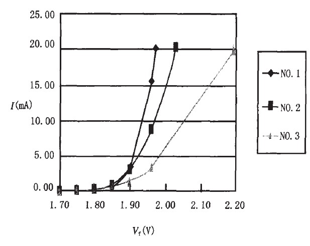 圖2 不同LED的正向電壓與電流的關(guān)系