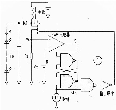 圖1是這種驅(qū)動電路的方框圖,它省略了傳統(tǒng)電路的三角波發(fā)生器和誤差放大器,而使用了CM0S邏輯IC和PWM調(diào)制器。當時鐘CLK信號為低電平時,RS觸發(fā)器處于復位狀態(tài),輸出FET關斷。而當CLK信號為高電平時,輸出FET導通。其電流被電阻Rs轉(zhuǎn)換成電壓,當此電壓高于基準電壓Vref時,比較器輸出由高變低,RS觸發(fā)器又被復位,輸出FET再關斷。其結果,即使電源電壓有變化,儲存在電感中的能量卻是恒定的。實現(xiàn)了恒功率輸出。這里是把Rs上的電壓降作為三角波電壓,PWM比較器將此電壓與基準電壓直接比較而起到了誤差放大器的作用?! ?br />
