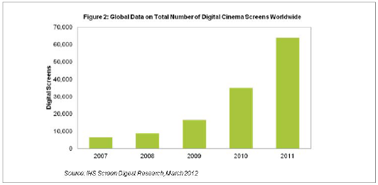 - 2011年全球數(shù)字影院屏幕大增到接近6.4萬(wàn)塊