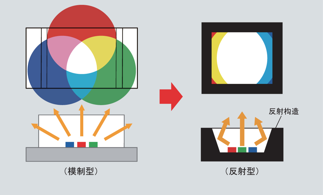 羅姆的反射型LED不僅保持了高捕光、高亮度特性,同時(shí)實(shí)現(xiàn)了業(yè)界最小的尺寸。另外,成功縮短發(fā)光元件間距,實(shí)現(xiàn)了在提高表現(xiàn)力時(shí)無可替代的卓越的混色性能。因此,可打造出超精細(xì)而且高亮度的LED矩陣,有助于提高娛樂設(shè)備的表現(xiàn)力。
