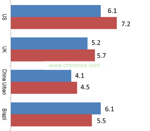 - 相較于美國或是歐洲國家等發(fā)達市場,新興市場如俄羅斯、巴西、墨西哥及中國的消費者更愿意新購或更替家中電視