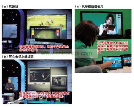 通過Xbox 360收看視頻時,也可利用平板終端或智能手機(jī)。外出時使用平板終端收看的視頻,回家后利用連接到Xbox 360的電視可繼續(xù)觀看。據(jù)稱,通過使用無線LAN等,使Xbox360與便攜終端實(shí)現(xiàn)了聯(lián)動。