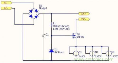 圖10 采用恒流二極管作為LED驅(qū)動電源