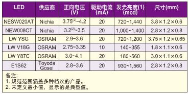 LED技術持續(xù)快速改進,制造商在使用新的材料、制造技術和LED設計來為同等大小的電流釋出更大的光輸出,這樣一來,幾年前需要4個LED進行背光的顯示屏如今可能采用2個LED就能實現(xiàn)同樣的背光亮度。不僅如此,過去通常使用冷陰極熒光燈(CCFL)進行背光的4到7英寸較大顯示屏,如今正在轉向使用LED進行背光。此外,LED的正向電壓正趨向更低。因此,不僅需要考慮驅動器制造商的數(shù)據(jù)表曲線上的驅動器效率,還需要基于采用所選LED對驅動器進行的評估來予以考慮。表1列舉了幾款LED的一些重要規(guī)范,顯示了這些LED在正向電壓和發(fā)光亮度等方面的差別。需要說明的是,正向電壓范圍的變化較大,這意味著驅動器的效率應該采用LED規(guī)范的極限值來進行評估。