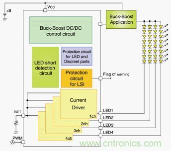 近年來,在車載用顯示器領(lǐng)域,為滿足有害物質(zhì)限制要求,使用水銀的CCFL背光燈正在被LED背光燈迅速取代。另外,儀表盤、汽車導航、音響顯示、后座娛樂等各種車載用顯示器正朝多樣化、大型化方向發(fā)展。在這種趨勢下,對于增加LED燈數(shù)量以及高亮度、高調(diào)光率的要求日益高漲。ROHM為滿足LED燈數(shù)量增加的這種發(fā)展趨勢需求,將實現(xiàn)高耐壓的升降壓DC/DC轉(zhuǎn)換器、可多燈驅(qū)動小功率LED且實現(xiàn)了高調(diào)光率的電流驅(qū)動器電路內(nèi)置于一枚芯片,擴充了LED驅(qū)動器產(chǎn)品陣容。