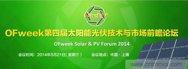 2014年5月21日,由OFweek主辦、OFweek太陽能光伏網(wǎng)承辦的“OFweek Solar & PV Forum 2014太陽能光伏技術(shù)與市場前瞻論壇”將在上海隆重舉行。本次峰會擬邀請杜邦、MANZ、特變、山億新能源等知名企業(yè)專家、高層,以及政策決策機構(gòu)、行業(yè)組織機構(gòu)嘉賓主講太陽能電池轉(zhuǎn)換效率的技術(shù)、CIGS薄膜電池技術(shù)與投資、光伏電站項目投資收益率(IRR)等重大議題。同時OFweek行業(yè)研究中心太陽能光伏領(lǐng)域分析師團(tuán)隊針對2014年中國光伏電站領(lǐng)域的建設(shè)熱點和投資機會共同組織本次論壇,給業(yè)界及希望在光伏領(lǐng)域?qū)ふ倚聶C會的投資方以明確的分析和投資指南。