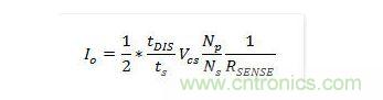 在二極管導(dǎo)通時(shí)間期間,輸出電壓與二極管正向壓降之和反射到輔助繞組為(VO+VF)*Na/Ns。通過在二極管導(dǎo)通時(shí)間結(jié)束時(shí)對繞組電壓進(jìn)行采樣,可以獲得輸出電壓信息。輸出電流(Io)可使用MOSFET的峰值漏極電流(Ipk)以及電感電流的放電時(shí)間(tDIS)來估算,因?yàn)樵诜€(wěn)態(tài)下,輸出電流(Io)與二極管電流(ID)的平均值相同。輸出電流估算通過峰值檢測電路來確定漏極電流的峰值,并利用電感放電時(shí)間和開關(guān)周期(ts)來計(jì)算輸出電流。將此輸出信息與內(nèi)部精確參考電壓進(jìn)行比較,產(chǎn)生誤差電壓(VCOMI),它可以確定MOSFET的占空比。使用Fairchild的創(chuàng)新TRUECURRENT技術(shù),可精確控制恒定輸出電流。