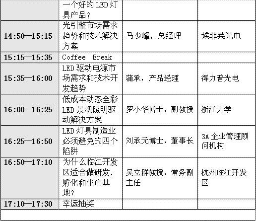 到目前為止,已邀請(qǐng)到的演講嘉賓包括:明微副總經(jīng)理李照華、占空比銷售總監(jiān)李明峰、昂帕CEO許明偉博士、士蘭微董事長陳向東、DesignLed技術(shù)總監(jiān)許崢嶸、晟碟總經(jīng)理陳亨由、埃菲萊總經(jīng)理馬少峰、三星LED總經(jīng)理唐國慶、飛泰科技董事長董沛、iSuppli LED照明市場分析師Alice Tao、3A企業(yè)管理顧問機(jī)構(gòu)董事長劉承元博士、德力普產(chǎn)品經(jīng)理蒲承、浙江大學(xué)羅小華教授、杭州臨江高新開發(fā)區(qū)常務(wù)副主任吳立群教授。