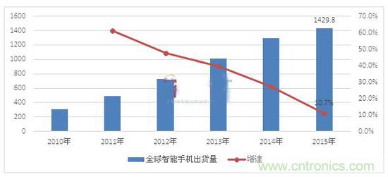 2015年全球智能手機出貨量保持兩位數(shù)增速,同比增長10.71%