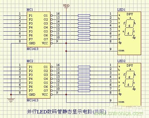 并行LED數(shù)碼管靜態(tài)顯示電路(共陽(yáng))