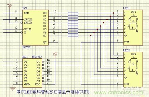串行LED數(shù)碼管動(dòng)態(tài)掃描顯示電路(共陰)