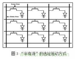 而第三種“半有源”驅(qū)動(dòng)雖然可以較好地避免像素之間的串?dāng)_現(xiàn)象,但是由于其像素電路中沒有存儲電容,并且每一列的驅(qū)動(dòng)電流信號需要單獨(dú)調(diào)制,并不能完全達(dá)到上面列出的有源選址驅(qū)動(dòng)方式的全部優(yōu)勢。