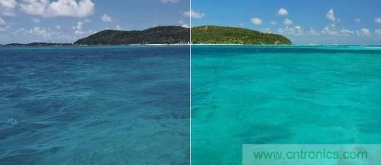 普通顯示器(左)和量子點(diǎn)顯示器(右)對(duì)比