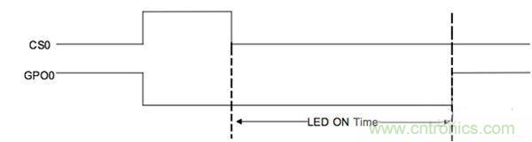 通常對(duì)于電容式按鍵來說,LED直接位于按鍵之下,從中心位置發(fā)光。用戶手指放在按鍵上,LED就會(huì)被隱藏起來。在此情況下,如果用戶手剛從按鍵上拿開LED燈就馬上關(guān)閉,那么用戶可能難以確定按鍵操作到底成功沒有。為此,我們可以讓LED在觸摸結(jié)束后保持“開啟”一小段時(shí)間,從而為用戶提供更好的視覺反饋。這種特性就叫LED開啟時(shí)間,如圖2所示。