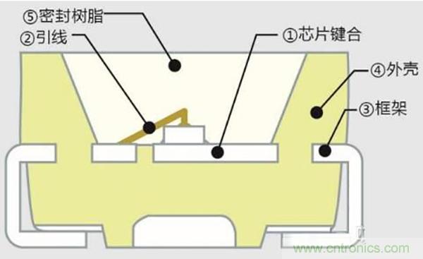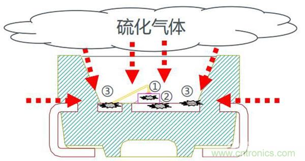 其中硫化氣體由密封樹脂/引線框架界面、引線框架/外殼界面、密封樹脂侵入,可能發(fā)生硫化的位置有4個(gè)位置: