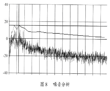 經(jīng)過以上電磁兼容性設(shè)計,開關(guān)電源的輸出電壓調(diào)整率△V0/V0=O.12/12=l%,達到了預期設(shè)計要求。圖7是紋波電壓輸出圖,圖8是其工作時的噪音分析圖。