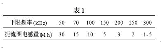 L1用于濾除低頻共態(tài)噪聲,它的磁芯一般采用高頻鐵氧體磁性材料。由于鐵氧體磁性材料沒有渦流的影響,高頻率仍能保持較高的導(dǎo)磁率,缺點(diǎn)是弱磁場容易飽和,但是L1在繞制時(shí)采用雙線并繞的方式,即在一個(gè)閉合磁路的磁芯上繞制相同電感量的兩個(gè)繞阻,電源電流經(jīng)兩個(gè)繞阻產(chǎn)生相反磁通,相互抵消,防止磁芯飽和。對于共態(tài)噪聲?;ジ邢禂?shù)產(chǎn)生磁通相互增強(qiáng),即電感量增強(qiáng),能很好的抑制共態(tài)噪聲。L1的共態(tài)扼流圈的電感量一般由所要抑制的噪聲電平的下限頻率(DC/DC轉(zhuǎn)換模塊的基波頻率)確定,下限頻率越高,所需要的電感量越小,粗略對應(yīng)值見表1。