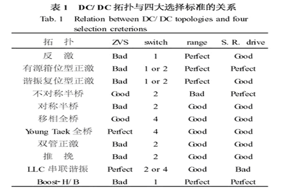 低電壓輸出,所以需要采用同步整流技術(shù)。 變化范圍非常寬。 查看表2 ,發(fā)現(xiàn)反激、有源箝位型正激、諧振復(fù)位型正激、對(duì)稱半橋、雙管正激、推挽式變換器、Boost-H/B是合適的候選拓?fù)洹?因?yàn)槭堑蛪狠斎霙]有ZVS 的限制,拓?fù)涞倪x用就自由很多。 從現(xiàn)有的產(chǎn)品來看以上的幾種DC/DC 拓?fù)涠加胁捎谩?由表1可知,最適用的拓?fù)涫怯性大槲恍驼?、諧振復(fù)位型正激、Boost-H/B。