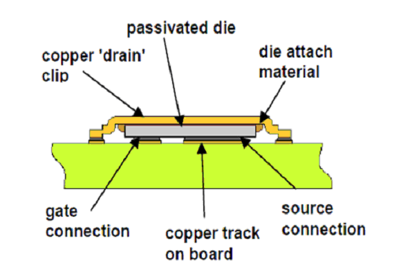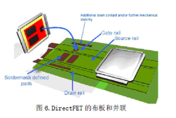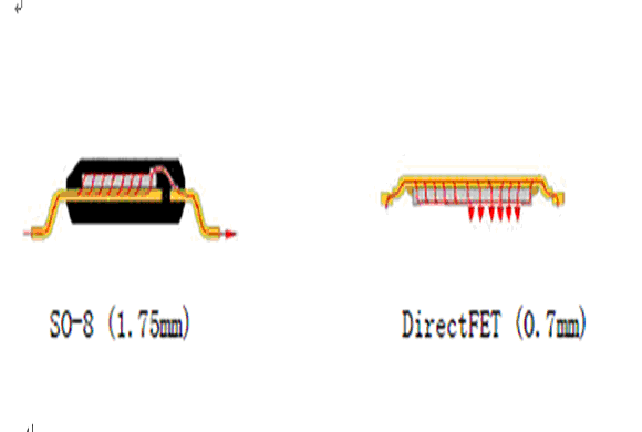 傳統(tǒng)的MOSFET使用引線鍵合來實(shí)現(xiàn)硅片和管腳框架之間的電連接,而DirectFET,將接觸面的數(shù)目和傳導(dǎo)路徑的長度減到最小從而減小了傳導(dǎo)損耗。