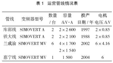 中國石油管道公司運營管線應(yīng)用高壓大功率變頻器情況如表1所列。