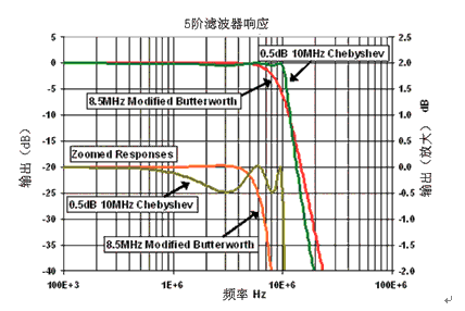 使用有源濾波器時要牢記,濾波器的Q越高,放大器的帶寬就越高。如果使用貝塞爾或巴特沃思濾波器乃至更高階的版本,我們要把各級的Q保持相對較低。設(shè)計支持橢圓或契比雪夫響應(yīng)的濾波器,其Q值較高,需要較高帶寬的放大器才能適當實施。否則,放大器對濾波器就會造成影響,從而改變我們所需的響應(yīng)。我們可通過修改組件值來實現(xiàn)上述目標,不過放大器之間的差異會因此變得更大。