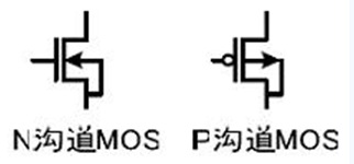 MOSFET管是FET的一種(另一種是JFET),可以被制造成增強(qiáng)型或耗盡型,P溝道或N溝道共4種類型,但實(shí)際應(yīng)用的只有增強(qiáng)型的N溝道MOS管和增強(qiáng)型的P溝道MOS管,所以通常提到NMOS,或者PMOS指的就是這兩種。右圖是這兩種MOS管的符號(hào)。