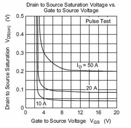 下圖是瑞薩2SK3418的Vgs電壓和Vds電壓的關(guān)系圖??梢钥闯鲂‰娏鲿r(shí),Vgs達(dá)到4V,DS間壓降已經(jīng)很小,可以認(rèn)為導(dǎo)通。