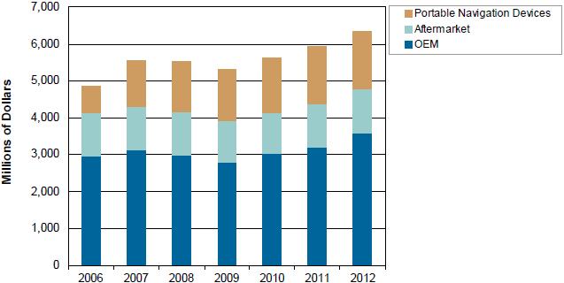 - 預(yù)計低成本in-dash導(dǎo)航儀將促進(jìn)各類汽車導(dǎo)航設(shè)備配售率從2007年時的15%上升到2012年的25%