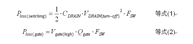 對(duì)于功率低于75 W的適配器而言,在工作能效提升方面,首先就需要考慮其損耗來(lái)源。事實(shí)上,其損耗主要包括兩個(gè)方面,分別是開(kāi)關(guān)損耗和門(mén)電荷(Qgate)損耗,這兩類(lèi)損耗分別可以用等式(1)和等式(2)來(lái)量化: