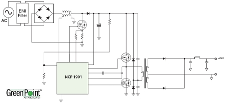 圖3:安森美半導(dǎo)體基于NCP1901組合控制器的90 W筆記本適配器參考設(shè)計(jì)。