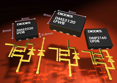 Diodes公司應用的高熱效率、超小型DFN封裝的雙器件組合技術,推出便攜式充電設備的開關。