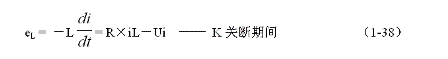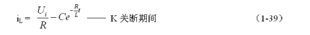 式中負號表示反電動勢eL的極性與(1-35)式中的符號相反,即:K接通與關(guān)斷時電感的反電動勢的極性正好相反。對(1-38)式階微分方程求解得: