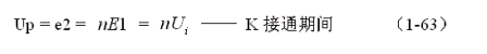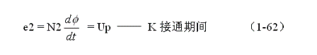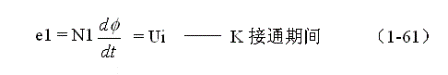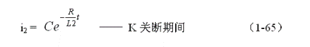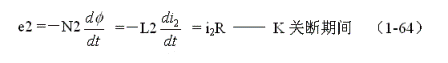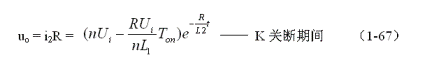 式中負號表示反電動勢e2的極性與(1-62)式中的符號相反,即:K接通與關(guān)斷時變壓器次級線圈產(chǎn)生的感應(yīng)電動勢的極性正好相反。對(1-64)式階微分方程求解得: